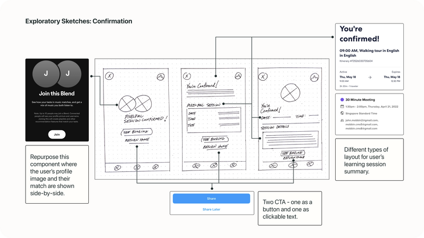 Next, I transformed concepts into tangible (exploratory) sketches informed by my UI inspiration.