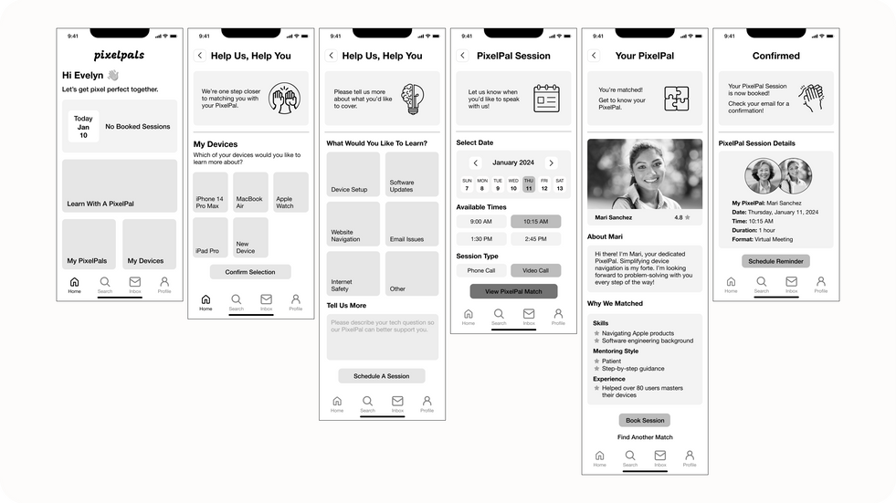 The persona, Evelyn, actively uses digital devices, but sometimes struggles with utilizing them effectively. The “Booking A Session” epic aligns with Evelyn’s needs by providing her with the opportunity to learn from a dedicated mentor.