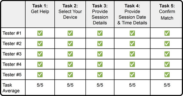 For my second round of user testing, all users were able to successfully complete the task of Booking a Session. Despite a 100% success rate, there were still opportunities for improved usability. I placed the issues on a design prioritization matrix to determine which were the most realistic to address relative to user value and level of effort.